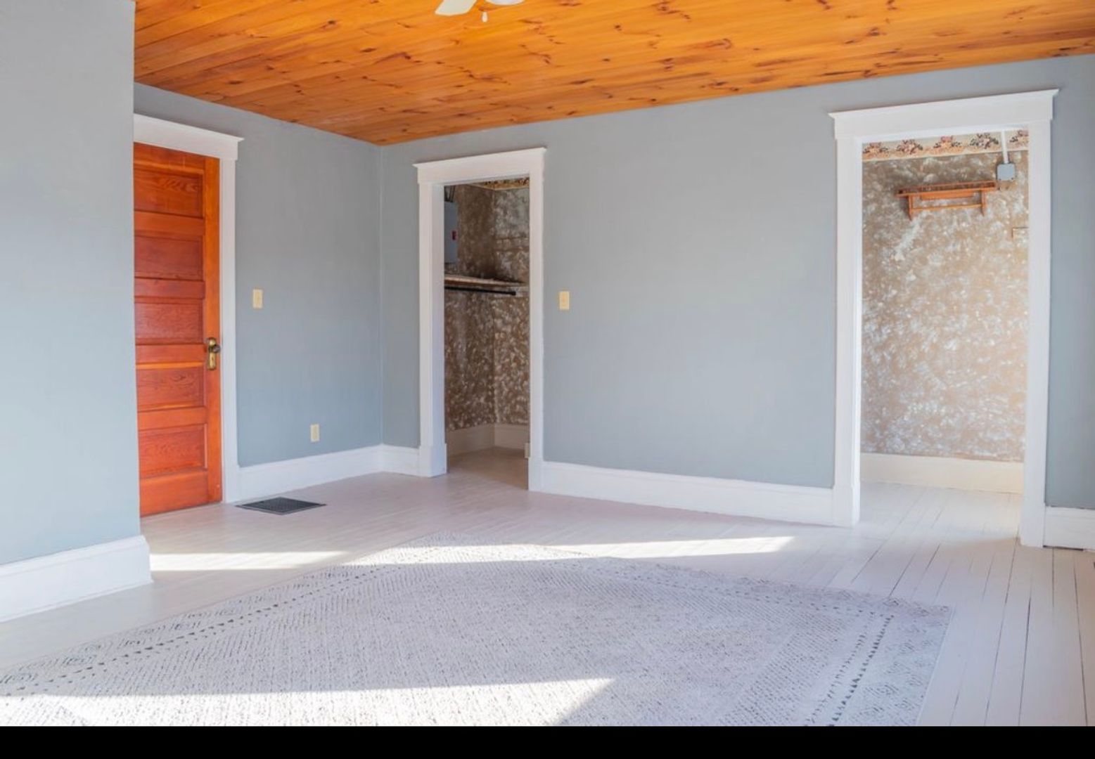 At the top of the stairs, there is a hallway leading to the very large master bedroom with a large closet. Across the hall are the 2 additional bedrooms and an upstairs full bathroom.