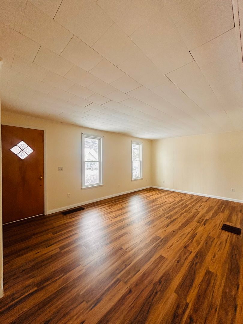 Upstairs you’ll find three bedrooms and a full bath. Outside, the property offers a large yard and two driveways, providing ample parking and outdoor space.